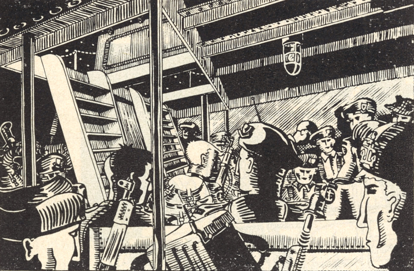 Les détails oubliés reviennent en foule. Jusqu’ici ce coin de France avait été pour nous des photos et des plans ; durant douze jours, nous avons appris patiemment les moindres détails des routes du secteur de l’invasion, mais tout cela était trop mathématique : un château d’eau devenait une ombre portée. Je n’avais pas encore compris que nous débarquions en France. Il manquait ce petit rien des noms propres. L’opération est devenue pour moi la Libération. Je crois que pour tous les Français les sentiments ont été les mêmes ; il nous fallait quelque chose de sûr pour y croire, par contre, les gars qui sont avec nous, originaires du Cambridgeshire ou du Yorkshire, par un miracle de propagande, sentent depuis longtemps, sans pouvoir l’exprimer, qu’il sera plus glorieux de tomber en libérant la France, que de mourir sur une quelconque tête de pont en Italie. Avec les cartes, on nous a remis le message de Montgomery : c’est très anglais, mais sympathique. Nous ne pouvons qu’attendre. Je me sens très calme, sans aucun désir. La mer est assez dure, mais cela compte peu. La L.C.I.S. bouge peut être plus que la L.C.I. que nous avions en exercice, mais c’est une bonne garantie que nous ne mouillerons pas trop en débarquant, et j’espère que mes cigarettes dans la poche de mon blouson ne seront pas mouillées. Je suis dans le poste n° 1 à l’avant : c’est une pièce de cinq mètres sur six environ, deux larges échelles permettent d’en sortir rapidement. Quand les panneaux donnant sur le pont sont fermés, une lampe électrique jette une lumière chiche sur les quatre bancs de bois qui tiennent tout l’emplacement disponible. On dirait des banquettes de gare, mais plus longues. Que vingt-cinq hommes et tout leur matériel puissent s’y entasser est un miracle ! Les radios et leurs appareils tiennent une place considérable. Quatre tubes d’acier soutiennent le pont. Les parois sont une curieuse combinaison de tôle de fer et de contreplaqué. Mais tout est peint en blanc, et seule une petite étagère faite d’une caisse dans laquelle les ustensiles de cuisine de l’équipage forment une nature morte, rompt cette impression pénible de clinique. La lumière vient du plafond, trop bas, et toutes les faces semblent dures et vieillies. Ce sont pourtant les figures de mes camarades de chaque jour, faces familières, mais je ne connais pas leur vrai visage. À la France Libre, on sait rarement à qui l’on a affaire, beaucoup ont changé de nom, et surtout au Commando, nous vivons au jour le jour, sans passé et sans avenir, comme des enfants. La vie de chacun de nous a été une aventure dont l’aboutissement est ici, dans cette carrée de L.C.I.S.
